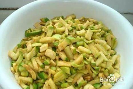 青皮萝卜切成5公分长,宽一公分的萝卜条,晾至一天