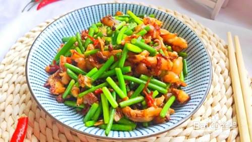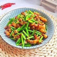 倒入切好的蒜苔炒至蒜苔断生关火盛出即可。