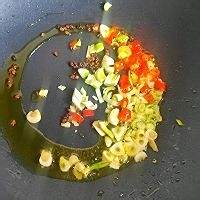 另起一个锅,锅内倒入适量油烧热倒入适量的花椒炒出香味后倒入切好的葱末,蒜丁和小米辣爆出香味。