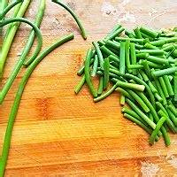 蒜苔摘干净放入盆中盆中倒入适量水和适量盐浸泡15~20分钟够清洗干净用刀切成段备用。