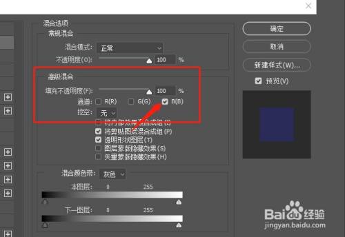右击图层,选择混合选项,在高级混合,通道这里设置成和图层名字对应的通道。如图。把三张图片都设置好。