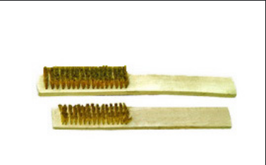 干刷法:如果铜绣比较浅时候,避免酸洗方法造成铜币损耗,可以用干刷方法来清洗钱纹,可以用油画笔一支,将笔头的棕毛剪短,然后把古钱置于玻璃板上固定,下面垫一块布,用油笔均匀的刷,把浮锈刷掉之后,再用水清洗。