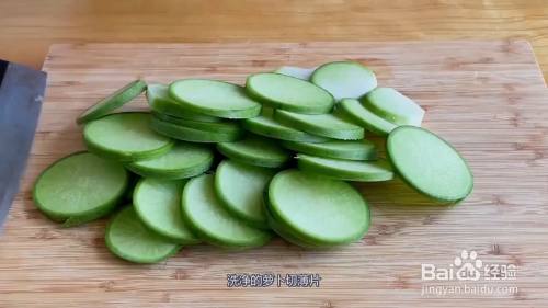 洗净的萝卜切薄片,锅中烧水,下入薄片,煮至8分熟。