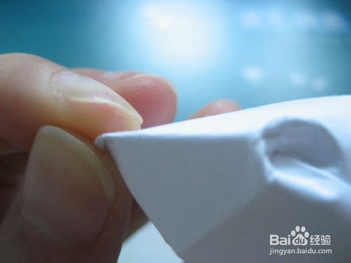 折鱼眼睛:如图一,拇指向内压这个尖角,压的时候,注意一下形状,压成椭圆形。