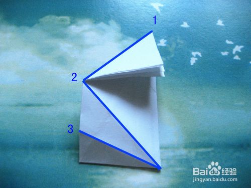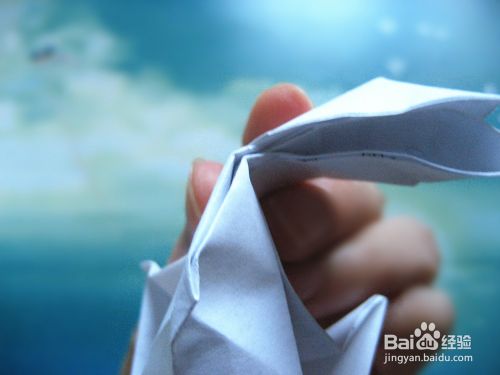 3. 重复步骤5,折出头部,并翻起中间部分;