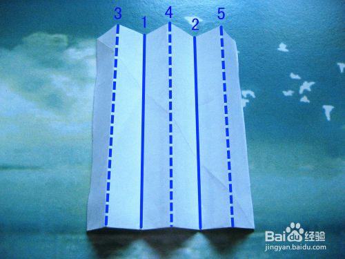 3. 对折,折出直线3、4、5,纸张被6等分。