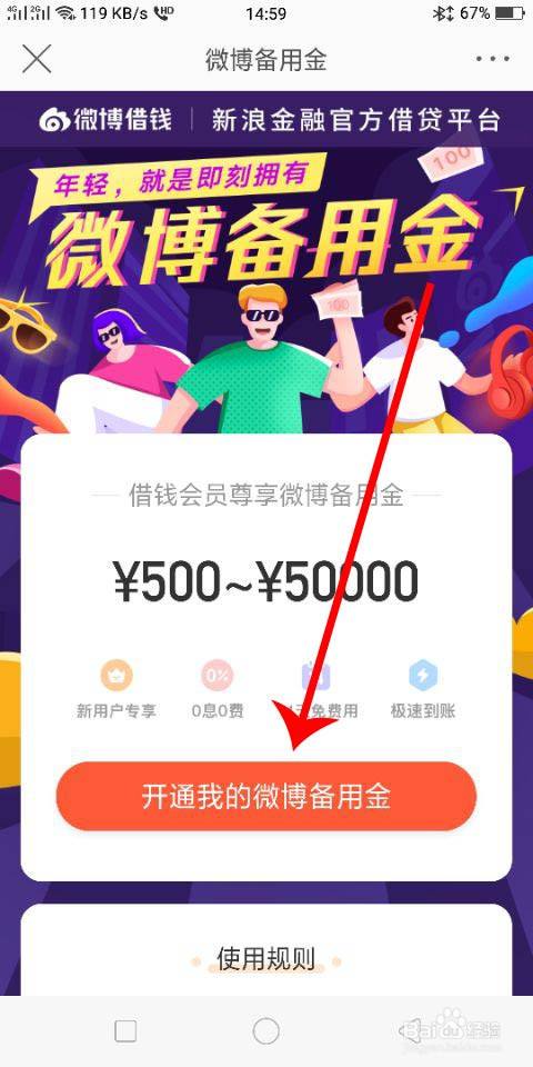 6.最后点击【开通我的微博备用金】就可以了