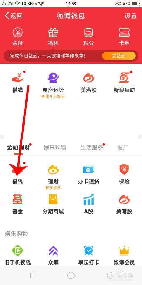接着点击【借钱】,如下图所示。