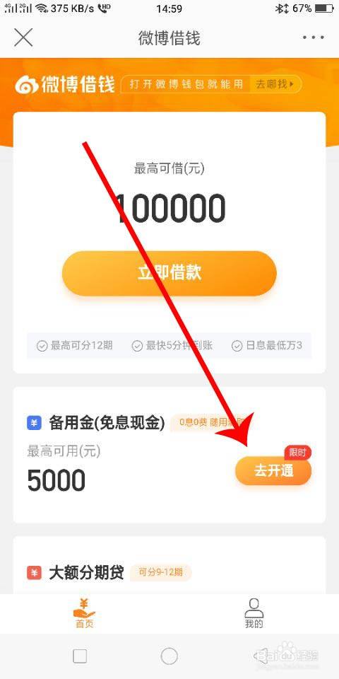 5.再找到备用金并点击【去开通】