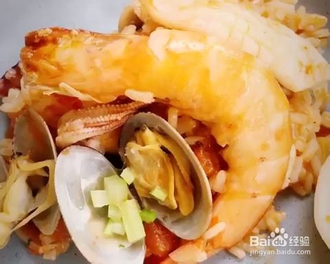 一。去掉虾线,切掉头和脚,把章鱼切成颗粒,把鱿鱼切成皮和花刀。蛤蜊入水除沙