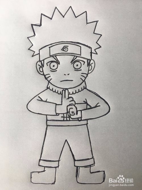 最后就是脚的部分了,这个部分其实是相对最简单的,类似两个不太规则的长方形就可以将脚的部分完成了,寥寥几笔,轻松简单,一幅火影忍者就完成了。