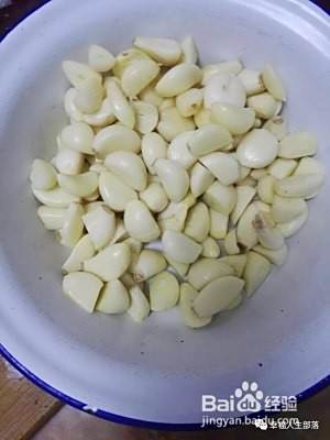 切白菜的时候,如果有助手,可以让对方帮忙扒蒜。如果是自己做,可以在泡洗白菜的时间里扒一下。想要辣味多一点,可以把蒜瓣切开。想要蒜味小一点,只把蒜扒好就行。