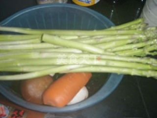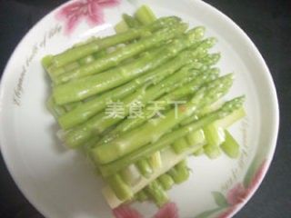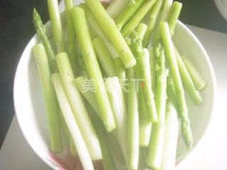 将芦笋洗净后,去根部的硬梆,然后切段。