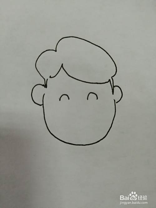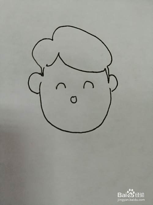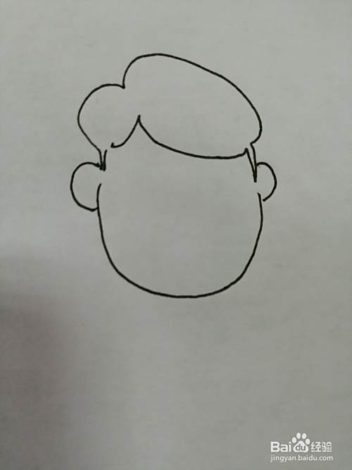 第四步,接着画出小男孩的两个大大的耳朵。