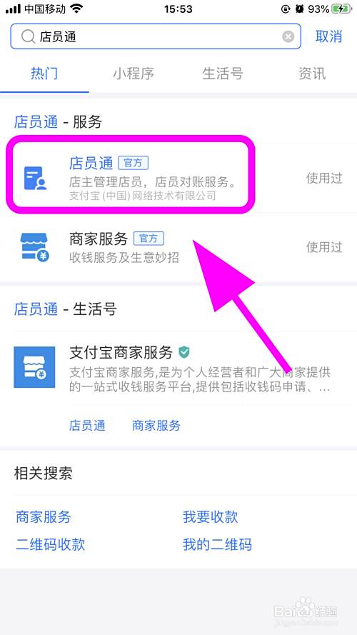 进入支付宝,在支付宝的顶端搜索框中输入【店员】;