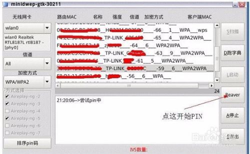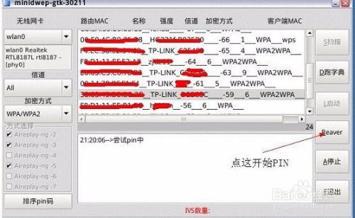 喜欢的可以选排序pin 码(下面会说说怎么用的),自认RP 不好的选择要破解的信号(不是什么信号都可以PIN 的最好选择后面有wps 的,很多没有的也可以pin)然后点Reaver 进入下一步。