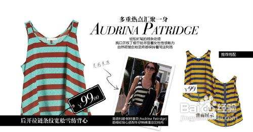 轻松时髦的条纹雪纺背心,搭配牛仔热裤最合适不过,清凉又时尚,背后的拉链细节还很性感!