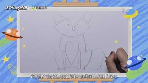 5在狐狸身体正中央用弧线画出一颗爱心。