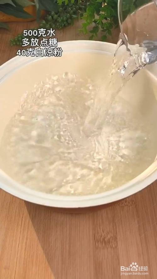 锅中加入400克牛奶,30克糖,30克白凉粉。搅拌均匀,小火煮开,趁热倒入模具,放凉凝固