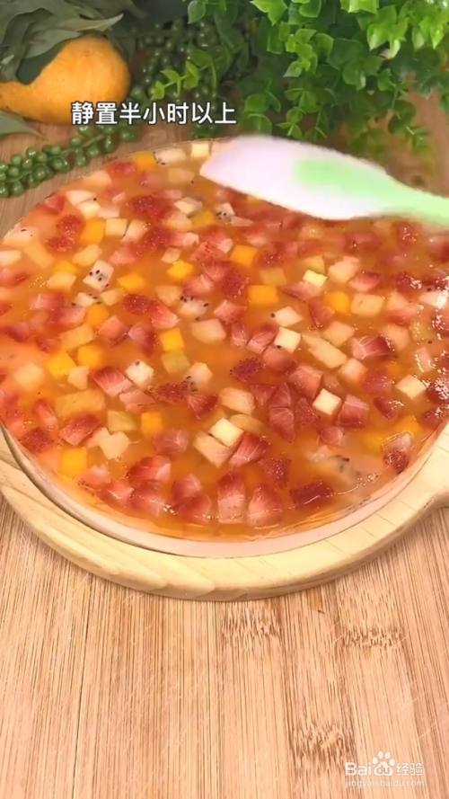 锅中加入500克水,40克糖,40克白凉粉。搅拌煮开后关火,放入芒果,猕猴桃,草莓。搅拌均匀。倒入模具中。