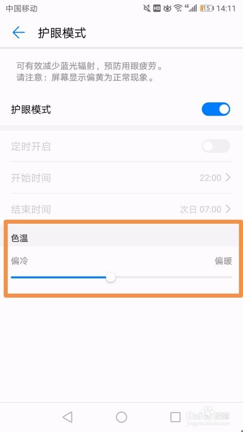 进入”护眼模式“后,当前的色温是偏暖,屏幕是黄色的。