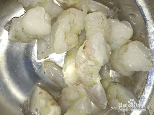 虾仁洗净,用料酒抓意下(虾仁如果太大,就切成两段)
