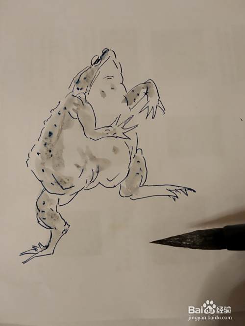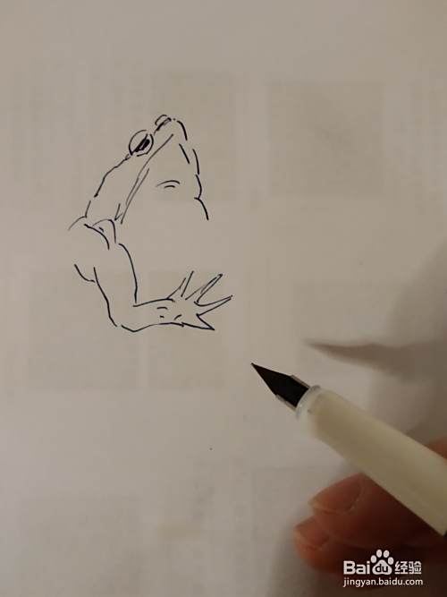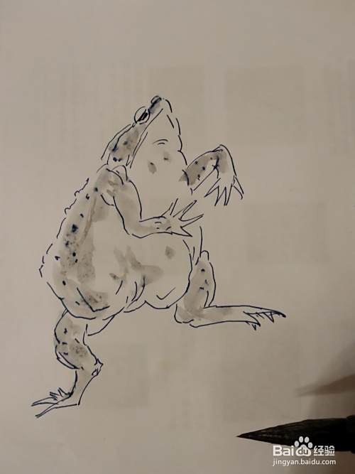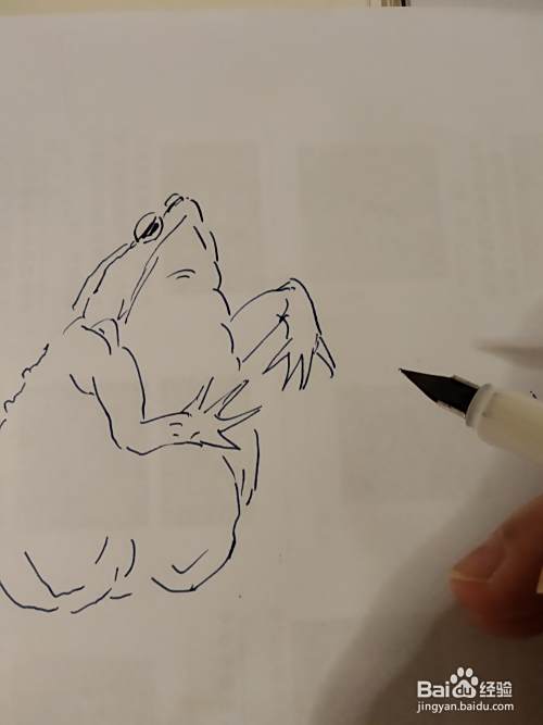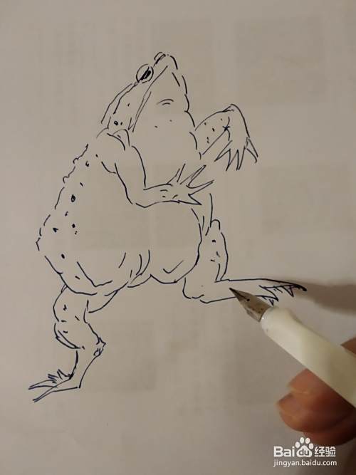 接下来画它的一个前肢,癞蛤蟆的前肢还是比较短小的。他的肚子特别大,呈三角形。