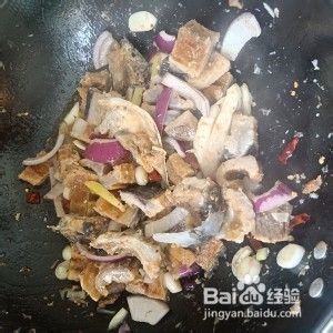 下葱白,蒜片,洋葱和干辣椒段,翻炒两分钟加火锅底料。