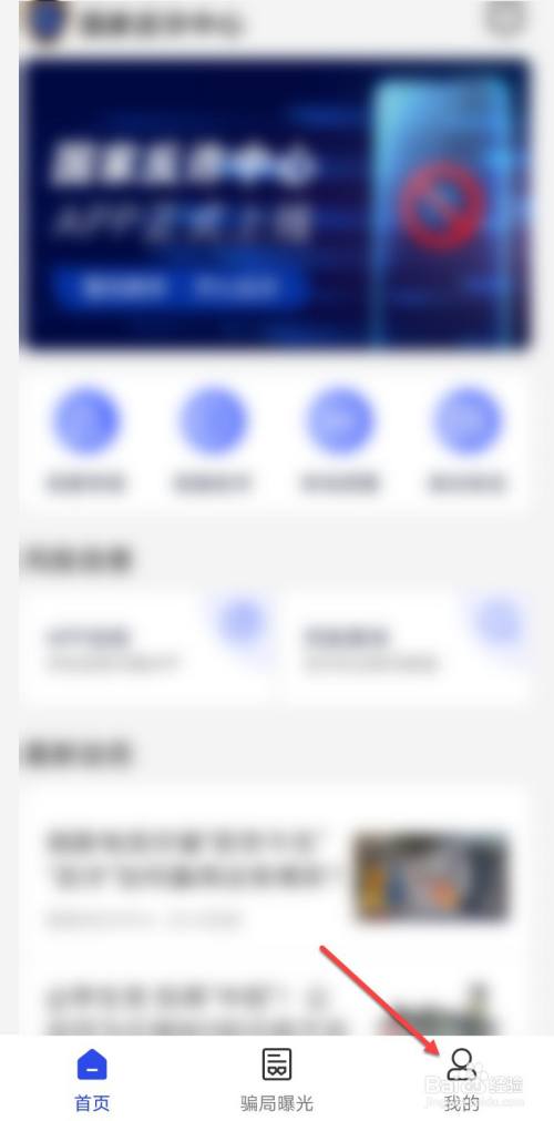 打开反诈中心,在首页点击右下角我的。