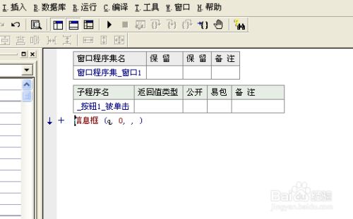 点击插入,选择窗口,插入一个新的窗口,点击按钮1,写入代码入下图所示,