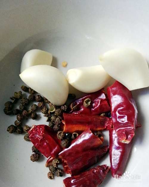干辣椒掰段,大蒜剥去蒜衣,洗净备用
