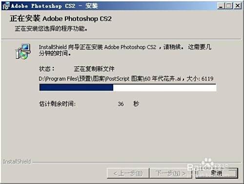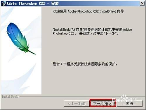 等一切就绪,Photoshop配置完之后,就可以进入安装进程,这里我们点击下一步来进行安装;