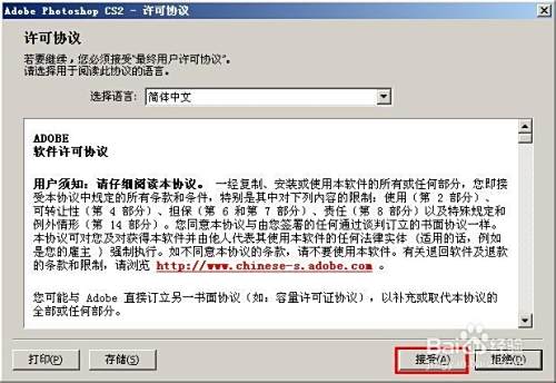这时候会弹出一个许可协议,我们点击接受按钮,接受协议内容,以继续完成安装过程;