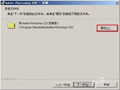 这时候软件会弹出安装位置选项,因为Photoshop软件文件比较大,我们不要默认装在C盘,我们点击右边的更改按钮;