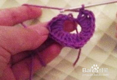 对于另一种颜色的线条,这里使用的是薰衣草,勾边。短针分别钩住短针和长针,两短针分别钩住长针和三长针。一颗心结束了