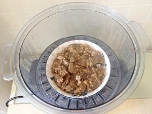 将腌好的牛仔骨摆在芋子上面,水开后放入蒸锅蒸约10分钟。蒸制时间请根据自家锅和火力以及牛仔骨的大小调整。芋子是提前蒸熟的,牛肉很容易熟,不要蒸太久