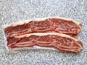 牛仔骨自然解冻后,用厨房纸吸干净血水,如果不是直接烹饪的牛仔骨请冲洗干净后再吸干水分。