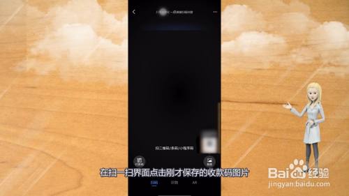 在弹出的窗口中点击扫一扫,在扫一扫界面点击刚才保存的收款码图片。