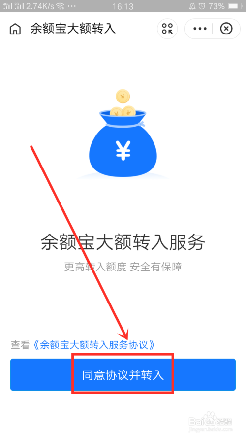 最后,点击“同意协议并转入”,这样就完成操作了。