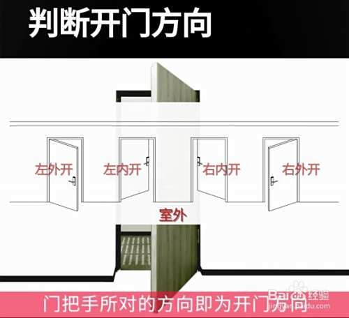 开门方向分为左内开,右内开,左外开和右外开四种,站在室外,门把手所对的方向即为开门方向。