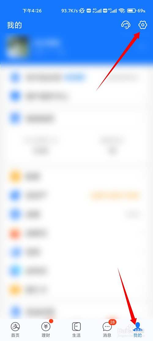 进入支付宝我的页面,点击右上角的设置图标。