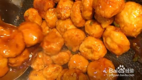 翻炒均匀后添一碗水,水烧开后加入少许淀粉液勾芡,使汤汁变粘稠。将炸好的豆腐丸子放于锅中,大火翻炒均匀。美味的红烧豆腐丸子就做好啦!