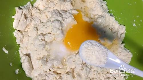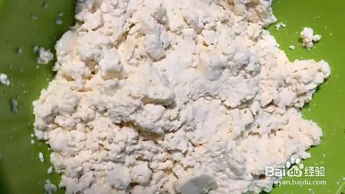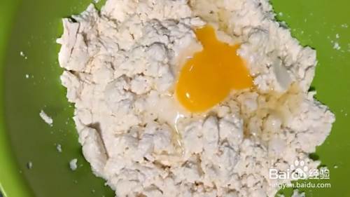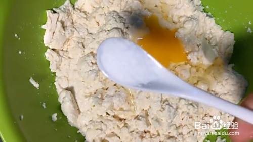 买一块豆腐,淋干多余的豆腐水,用手将豆腐抓碎。再向碎豆腐中打入一个鸡蛋。