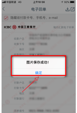 第六步,如下图所示,显示电子回单成功保存。我们下载好的电子回单为图片格式。