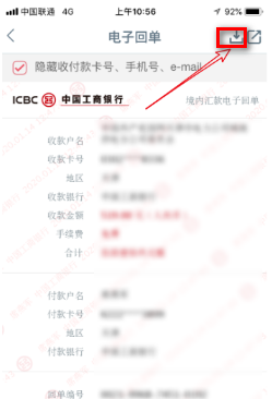 第五步,最后点击页面右上角的下载图标,这样就可以将我们需要的电子回单保存到手机上了,如下图所示。