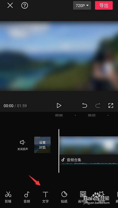 添加视频后点击下方音乐菜单;