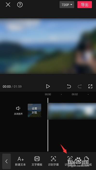 找到并点击识别歌词菜单添加歌词字幕。