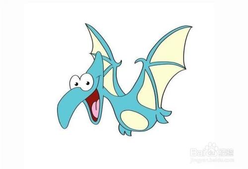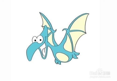 下面我们就可以涂色了,我们先翼龙的身体涂上湖蓝色,翅膀和肚子的部分涂浅黄色。