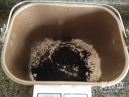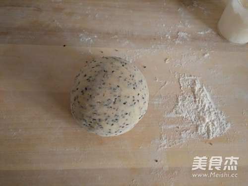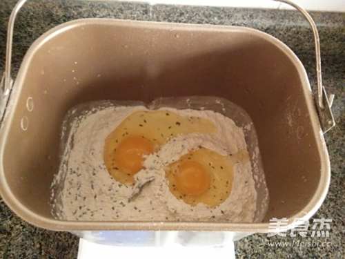 3将面粉和黑芝麻混合均匀后打入2个鸡蛋