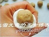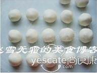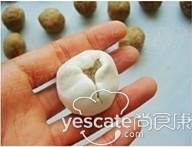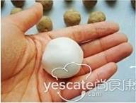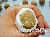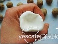 将糯米面团和核桃馅分别分成15克和10克的小剂子,并滚圆